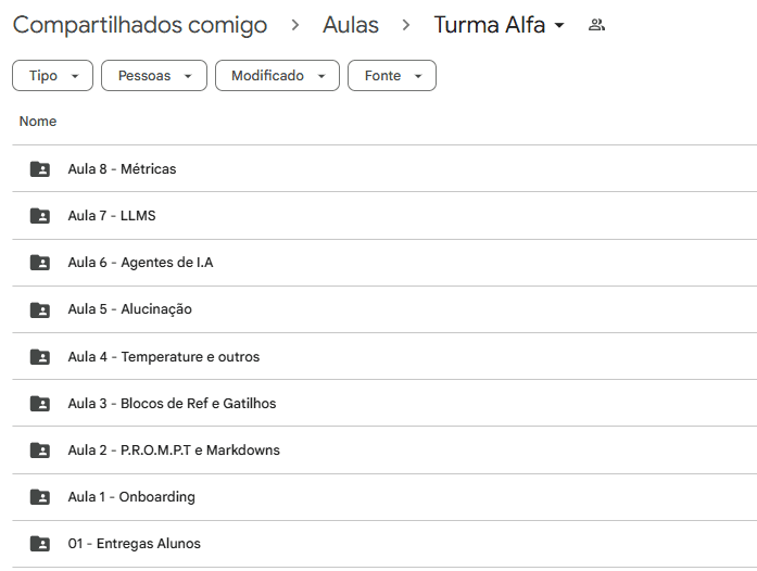 Porque a primeira aula é um encontro de onboarding — onde eu me apresento, explico a metodologia de ensino, mostro os pilares que vamos trabalhar e detalho as dinâmicas dos encontros seguintes.